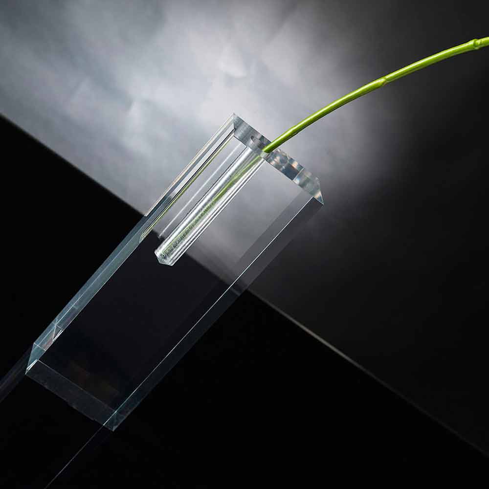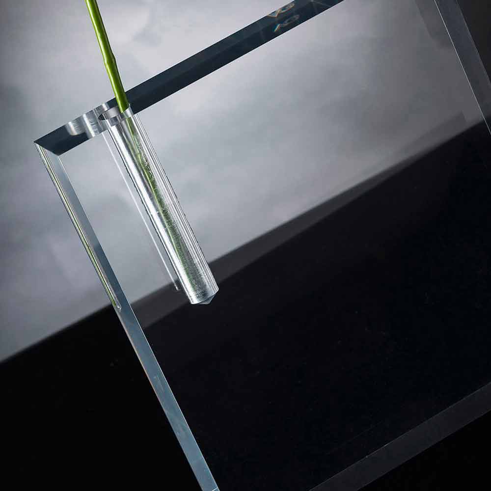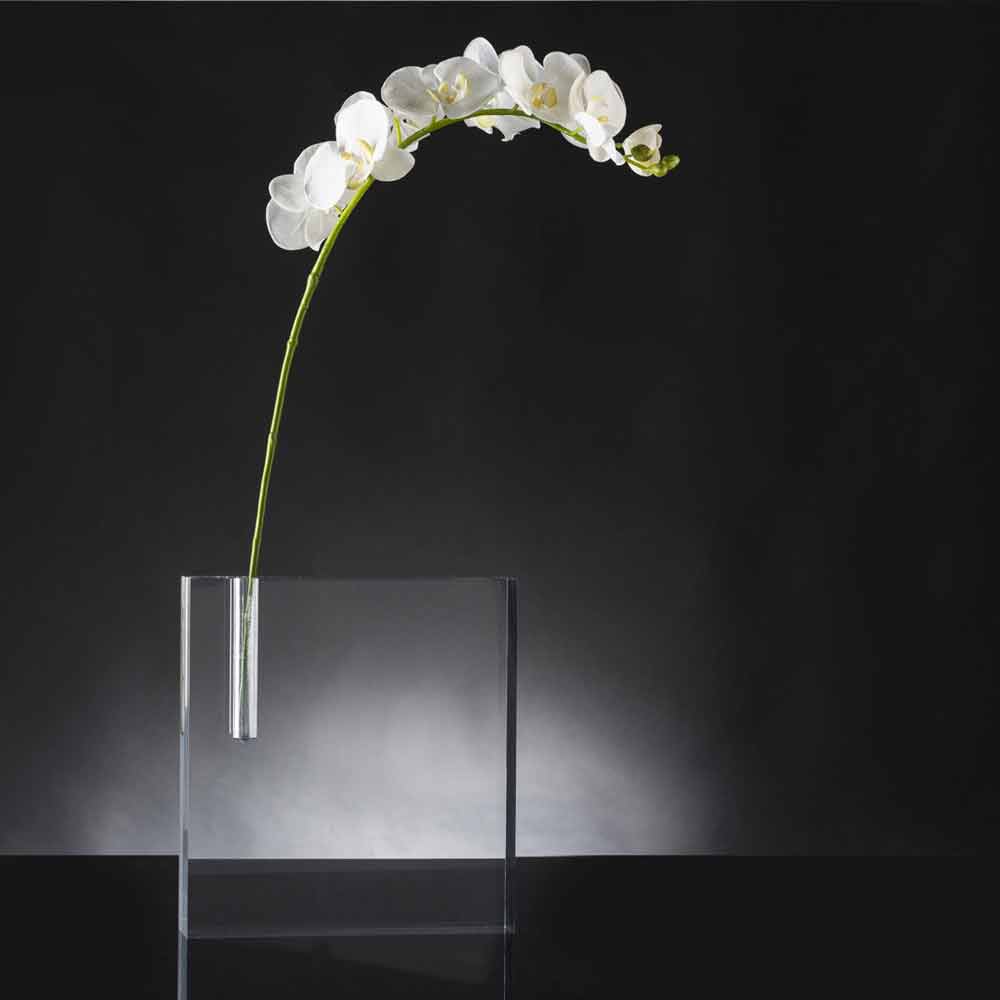 Vaso decorativo per interni in plexiglass trasparente Made in Italy.