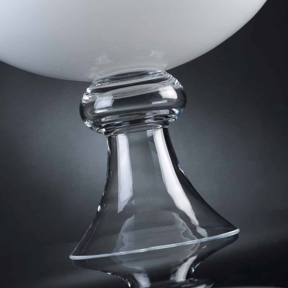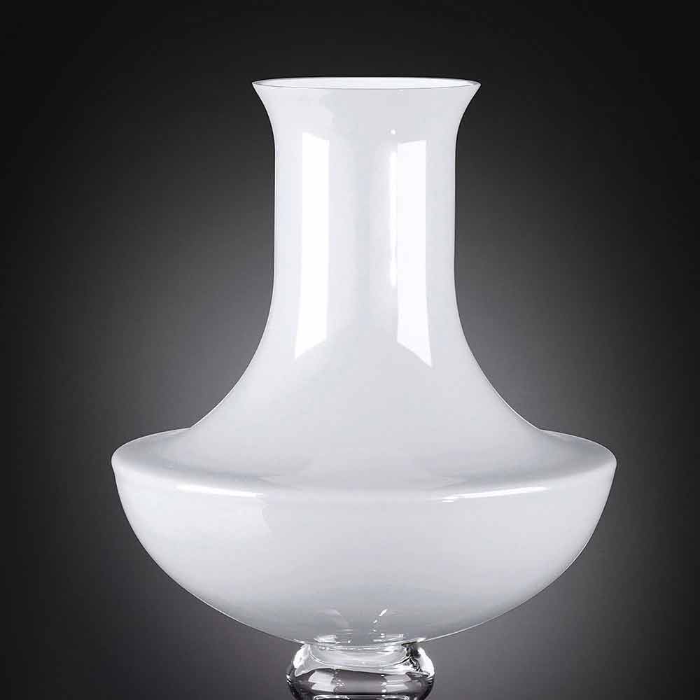 Vaso moderno per interni in vetro bianco con base trasparente realizzato attraverso una lavorazione 100% Made in Italy. Un complemento caratterizzato da un'estetica semplice e pulita e da una figura delinaeata da forme morbide e tratti sinuosi che ne permettono l'utilizzo di qualsiasi ambiente dallo stile raffinato grazie anche all'eleganza senza tempo del vetro, materiale di qualità e di elevato pregio. Un design ideale per i più svariati ambienti, dall'arredamento di casa a quello di hotel, ristoranti, zone contract, spa ma anche come allestimento per eventi e matrimoni.