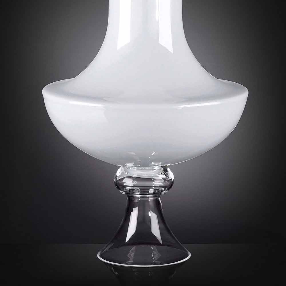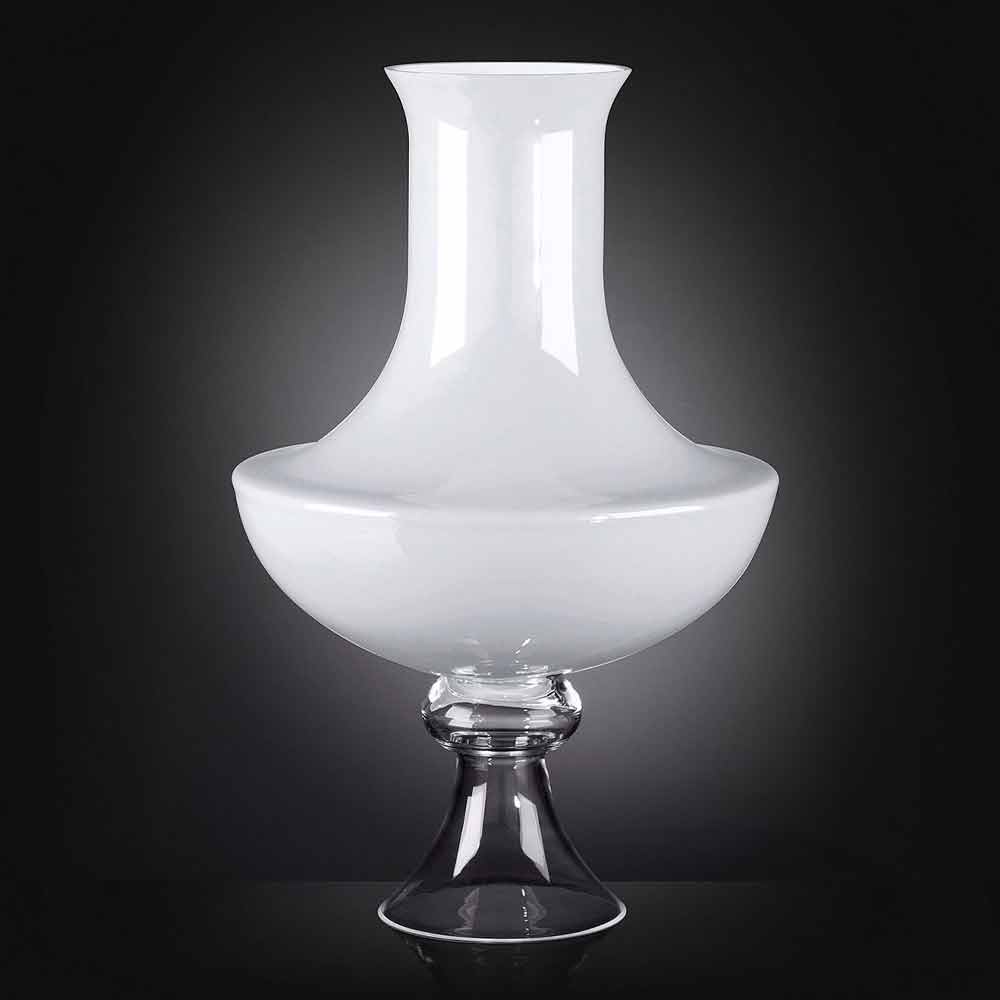 Vaso decorativo da interno in vetro trasparente e bianco realizzato in Italia.
