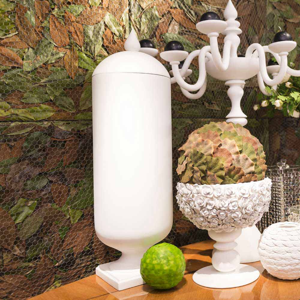 Vaso decorativo in ceramica bianca opaca lavorata artigianalmente in Italia.