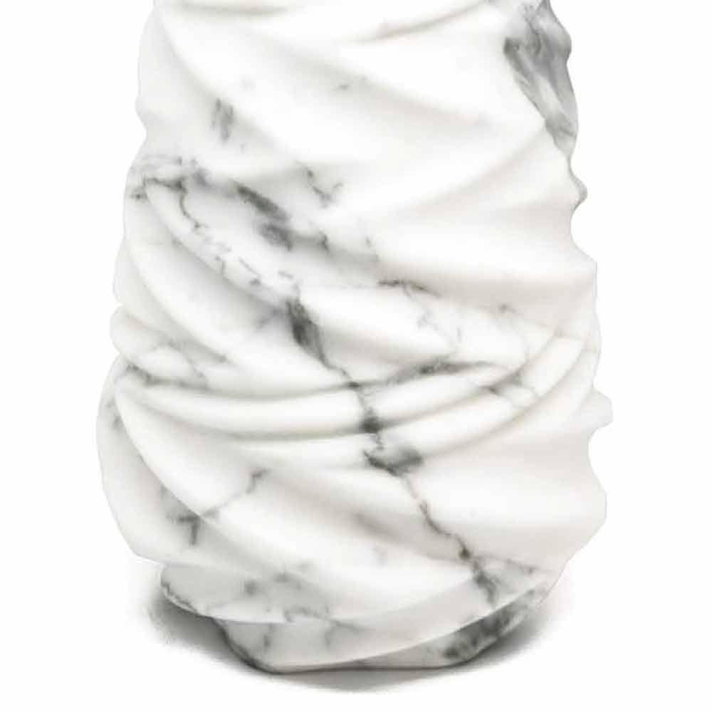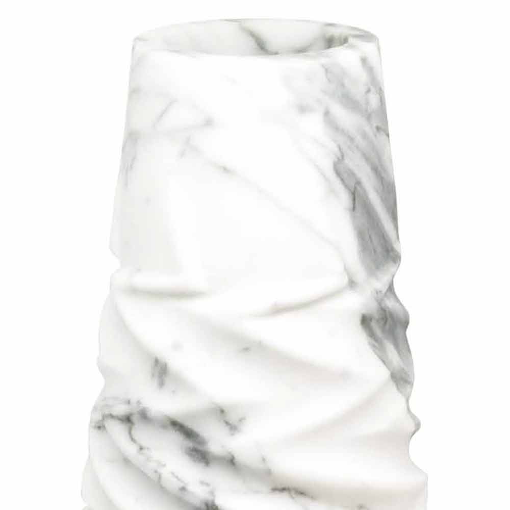 Vaso decorativo interamente realizzato in marmo arabescato che è una varietà di marmo bianco pregiata con venature grigio scure, dette "arabeschi".