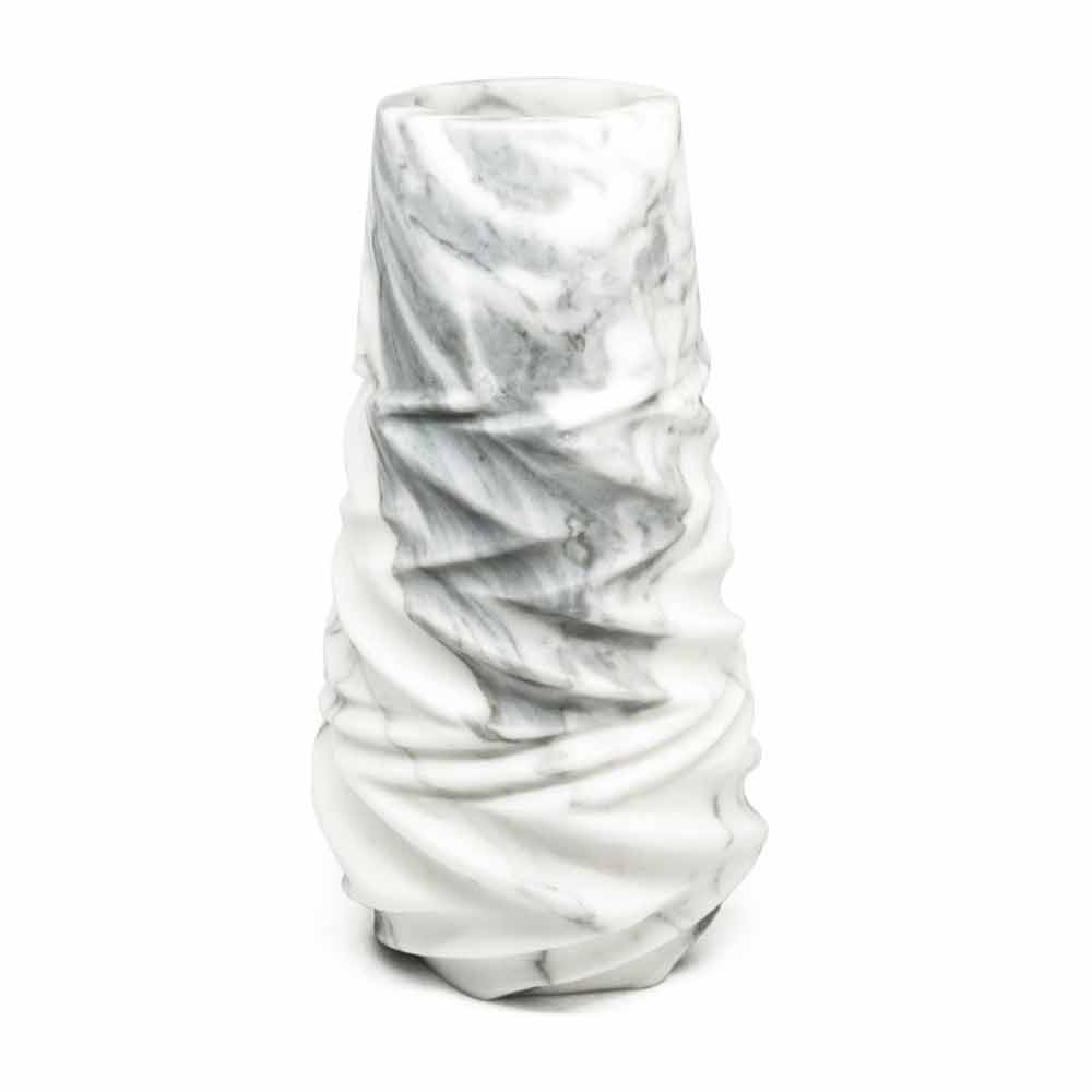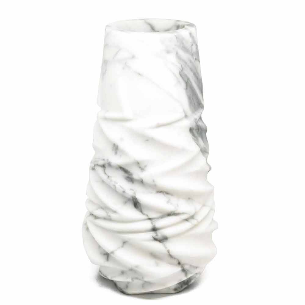 Vaso decorativo di design realizzato in marmo arabescato di alta qualità Made in Italy.