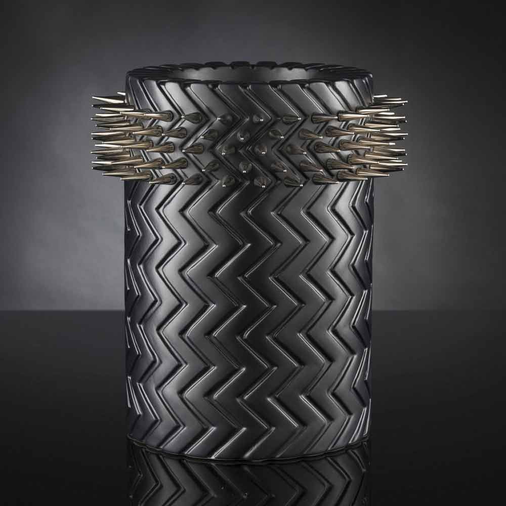 Vaso decorativo in ceramica nera opaca con chiodi in acciaio realizzato attraverso una lavorazione artigianale Made in Italy. Un'estetica imponente e dalla forte personalità contemporanea sottolineata dall'utilizzo di due materiali differenti uniti per creare un'idea innovativa e rivoluzionaria ideale per chi ama arredare i proprio spazi in maniera unica e con carattere. La produzione artigianale rappresenta uno dei suoi punti di forza in quanto accresce e sottolinea il pregio e la qualità del prodotto dando vita ad un risultato esclusivo e ricercato. Uno stile ideale per i più svariati ambienti, dall'arredamento di casa a quello di hotel, ristoranti, zone contract, spa ma anche come allestimento per eventi e matrimoni.