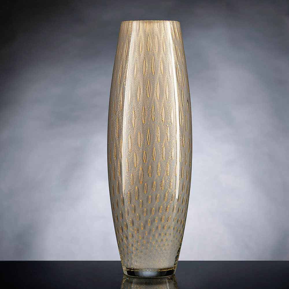Vaso moderno in vetro soffiato di Murano realizzato in Italia.