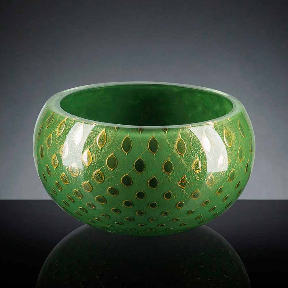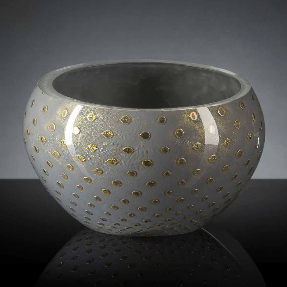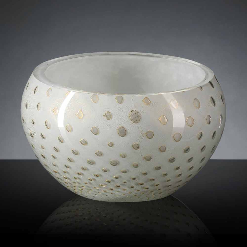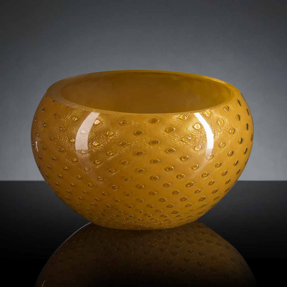 Vaso rotondo per interni in vetro soffiato di Murano colorato Made in Italy.