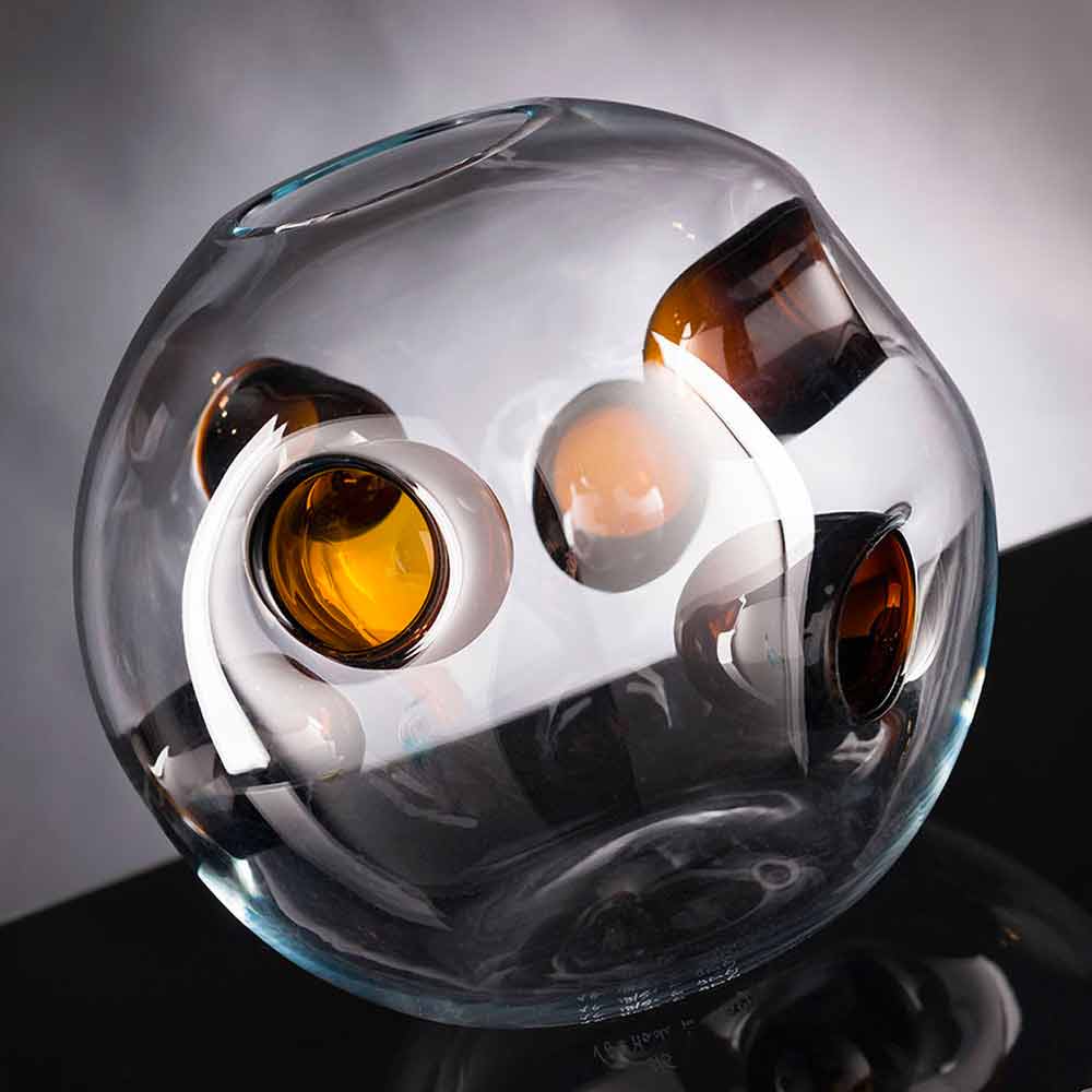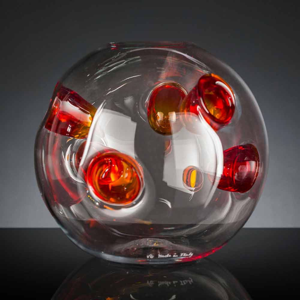 Vaso in vetro soffiato di Murano con dettagli colorati realizzato in Italia.