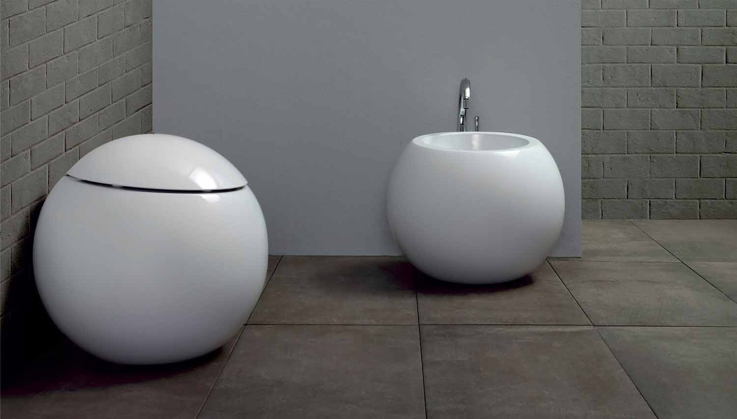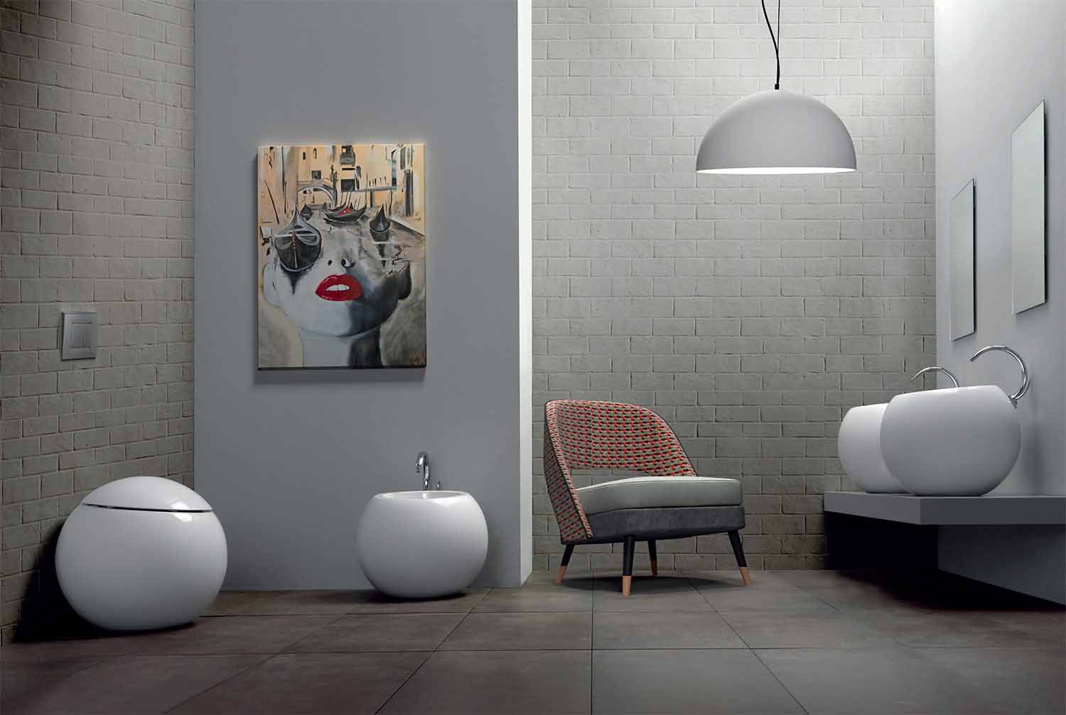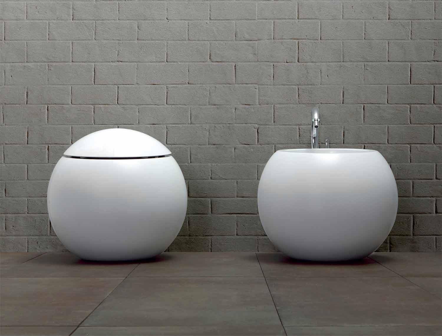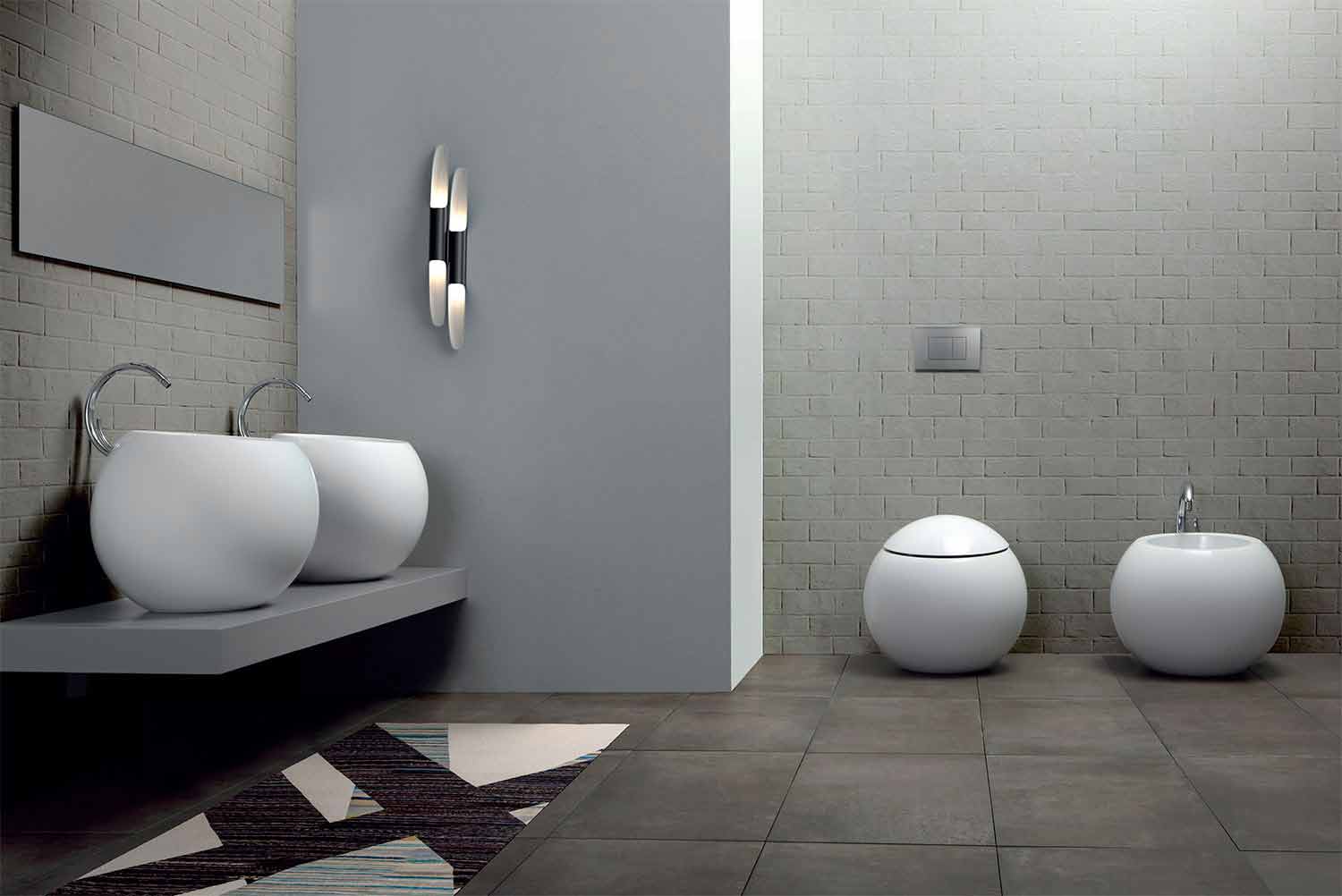 forme archetipe e di grande impatto visivo, volumi puri, senza fronzoli. I sanitari di questa collezione