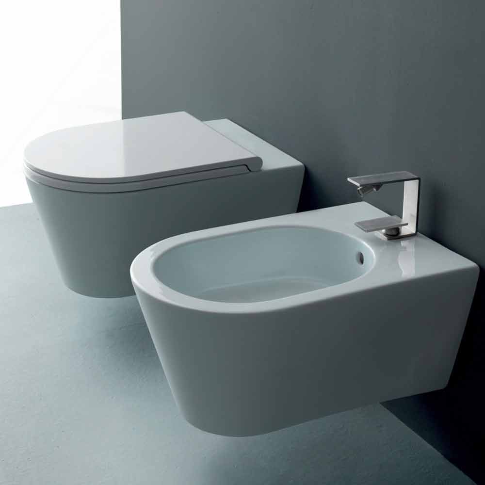 Vaso WC sospeso in ceramica moderno Sun Round 57x37 cm, made in Italy