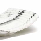 Vassoio decorativo interamente realizzato in marmo arabescato, una varietà di marmo bianco pregiata con venature grigio scure, dette "arabeschi".