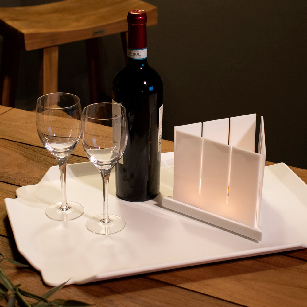 Vassoio da cucina di design in corian bianco, qualità pregiata made in Italy.
