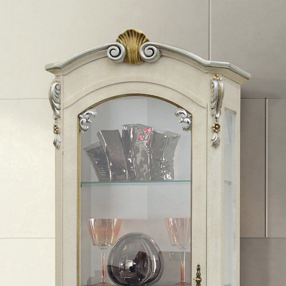 Vetrina classica con anta e cassetto in legno bianco Made in Italy.