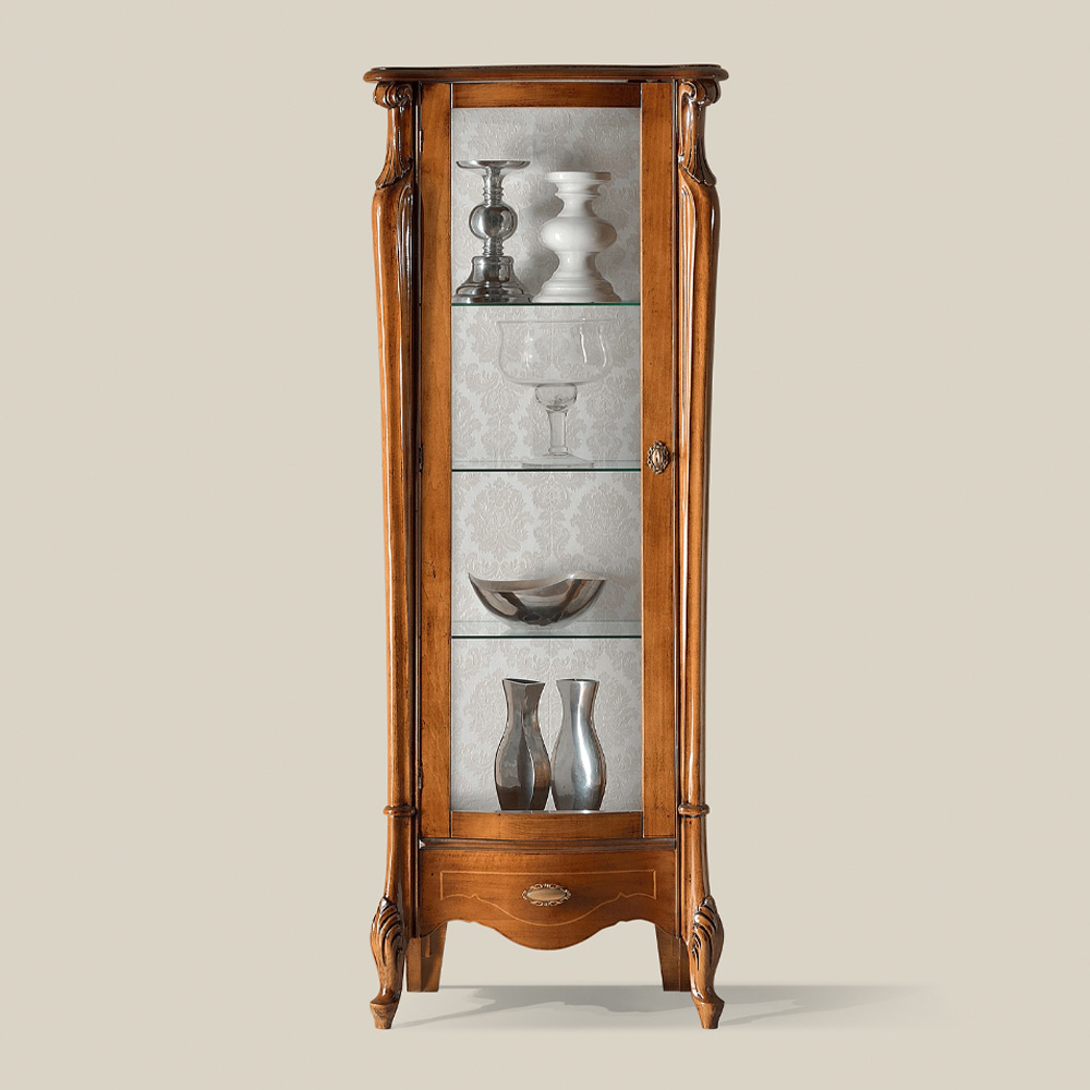 Vetrina classica con anta in legno bianco o noce Made in Italy.