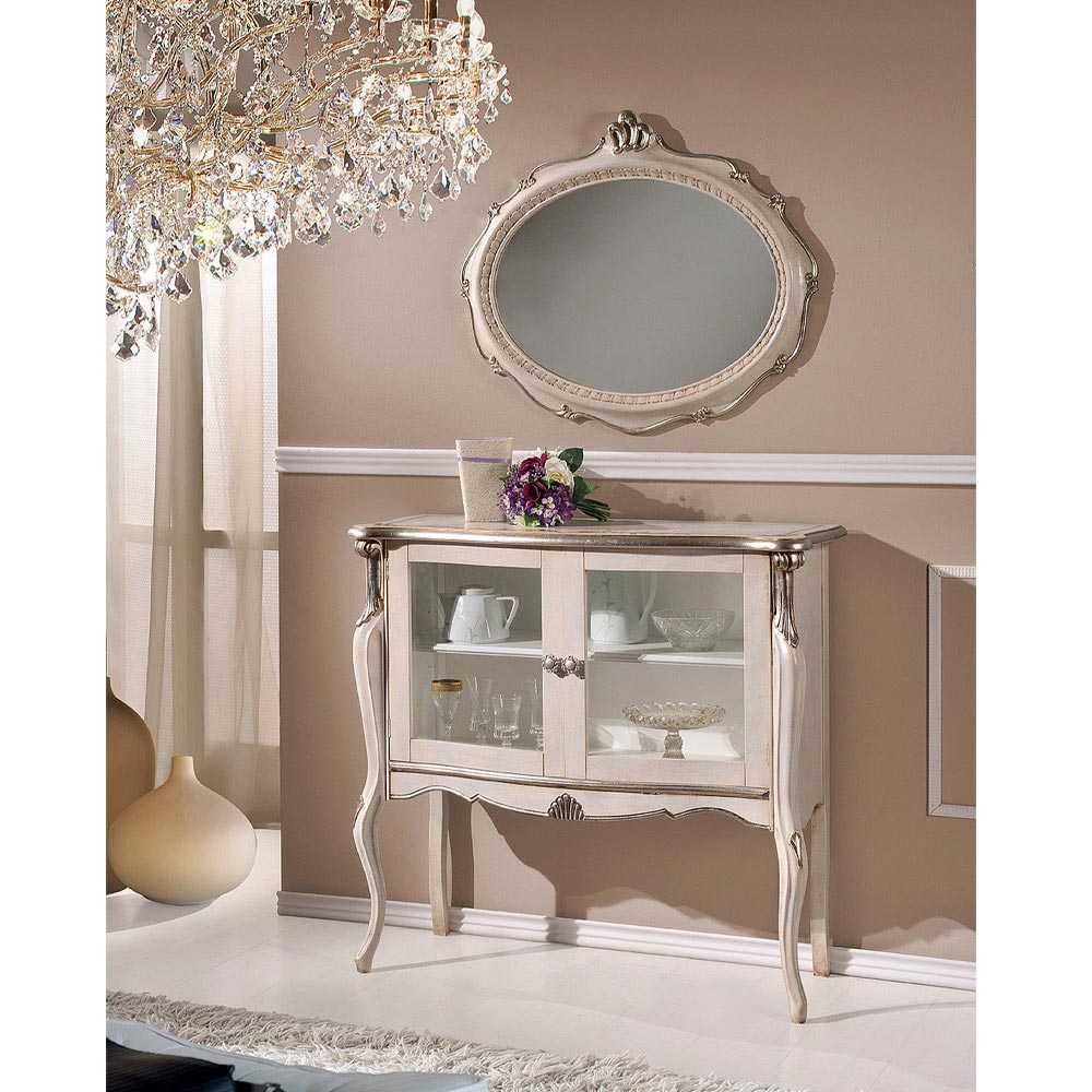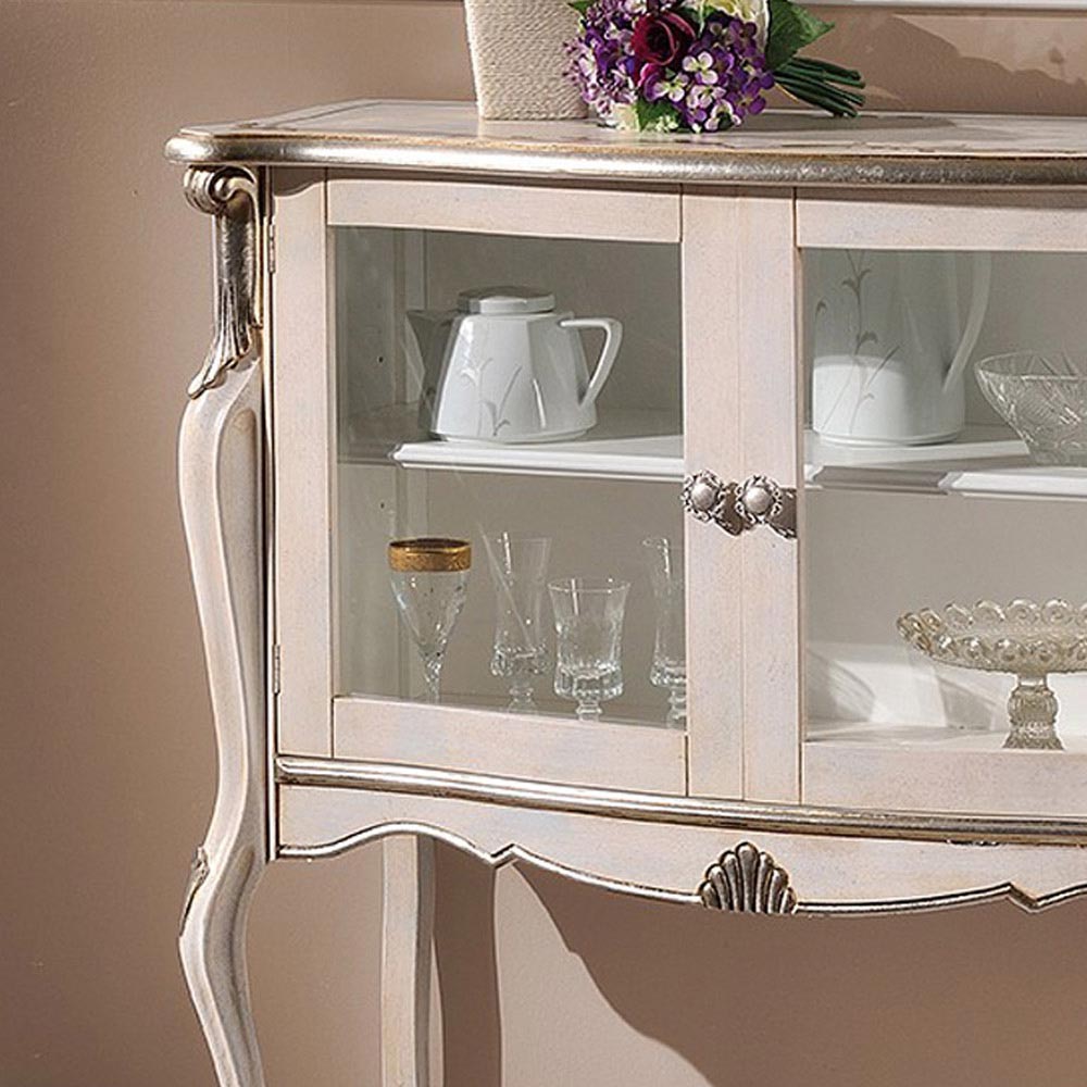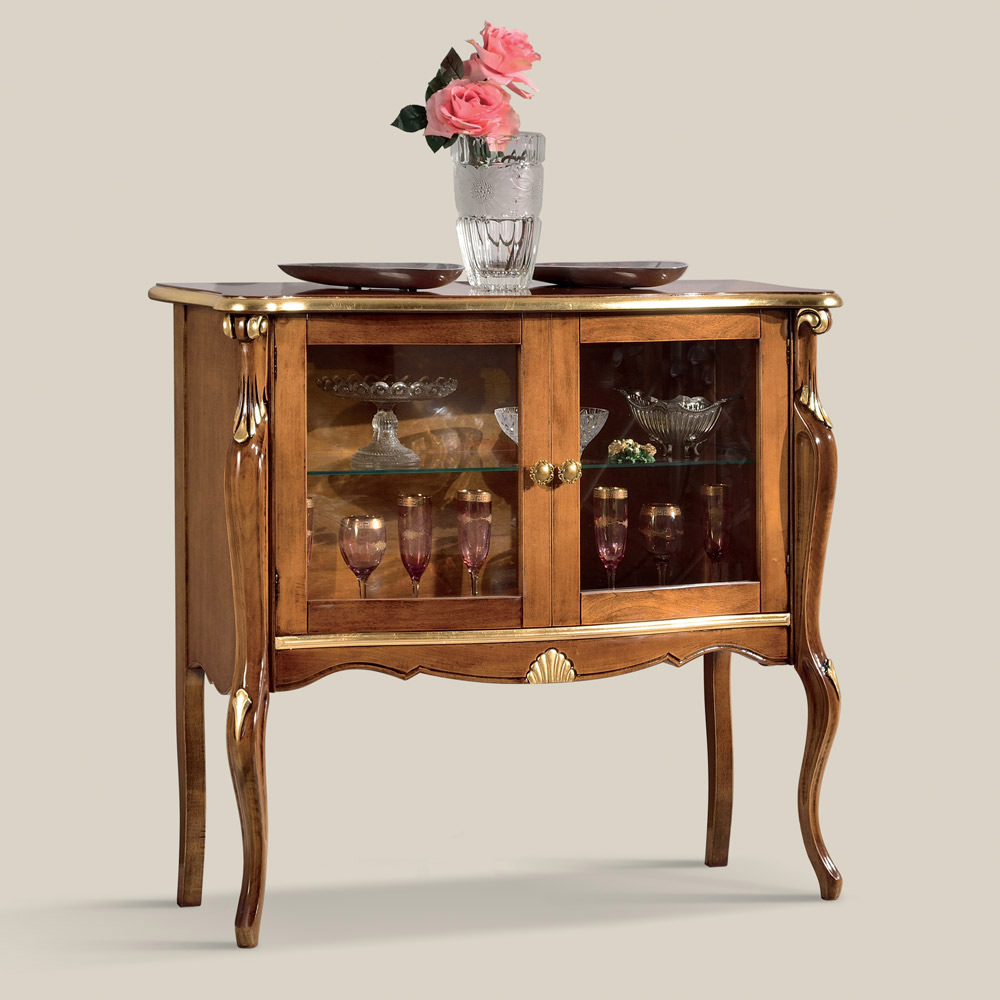 Vetrina da soggiorno dallo stile classico realizzata in legno e completa di 2 eleganti ante in vetro ideale per arredare il tuo living con un'eleganza senza tempo. Disponibile in due varianti: finitura in